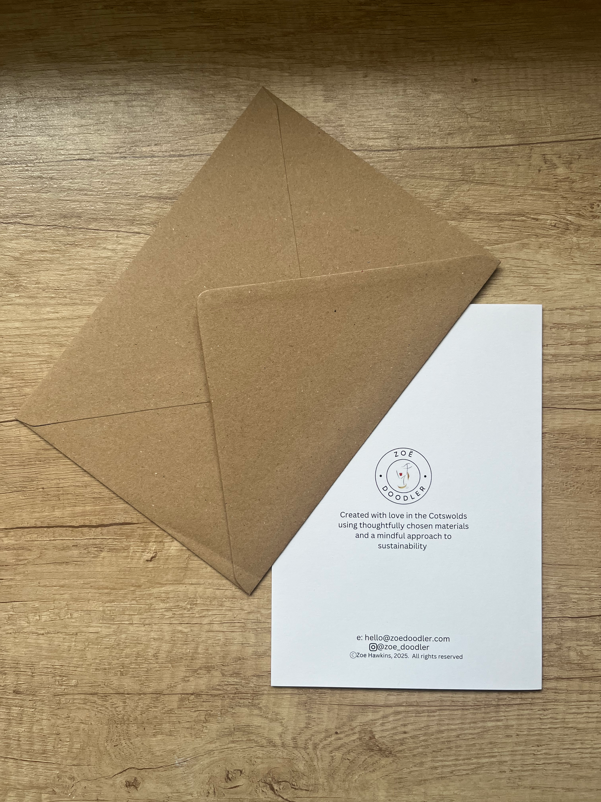 Because the most important love story is the one with yourself. A doodle-filled reminder that loving yourself isn’t selfish — it’s essential. This playful heart-burst card celebrates self-kindness, confidence and choosing you. Perfect for Galentine’s Day, birthdays, pick-me-ups or just-because self-love moments.